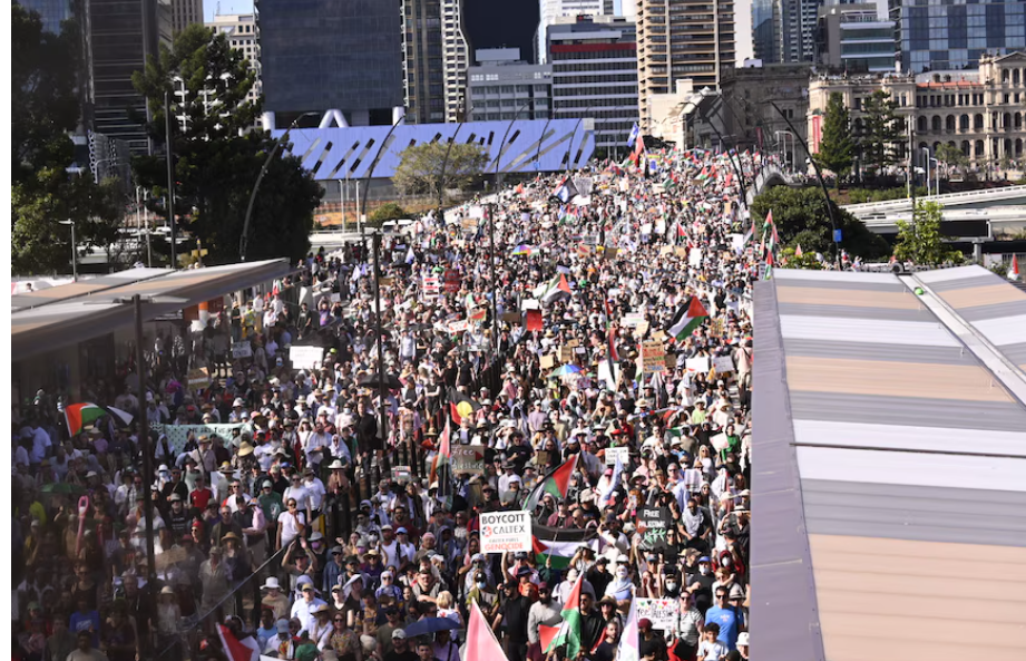 انضم عشرات الآلاف من الأستراليين إلى المسيرات المؤيدة للفلسطينيين. خرجت هذه المسيرات في جميع أنحاء البلاد يوم الأحد. ولكن، يبقى العدد الدقيق للمتظاهرين غير واضح. وقد زادت هذه الاحتجاجات في الحجم والتكرار في الأسابيع الأخيرة. يأتي هذا بعد توتر العلاقات بين إسرائيل وأستراليا.