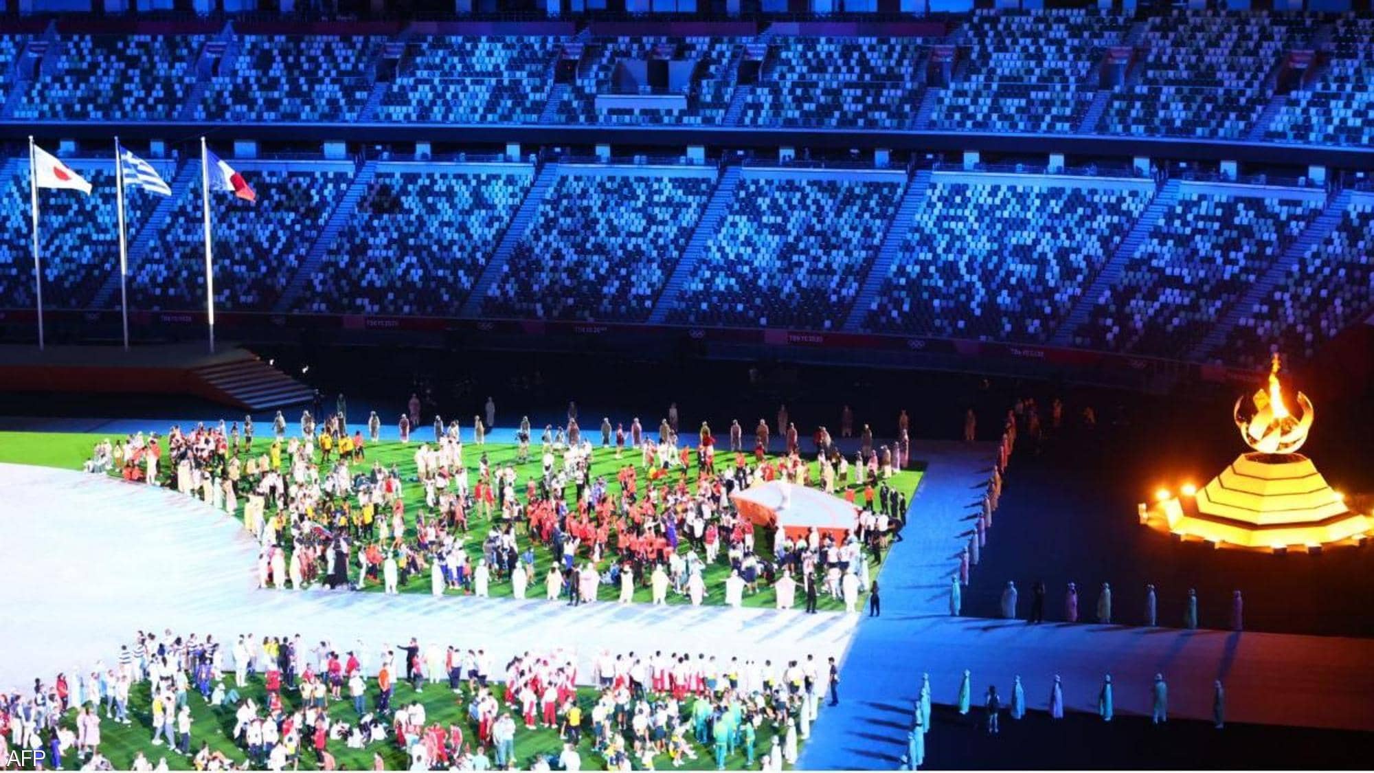 وأمام مدرجات شبه خالية قدمت عروض راقصة وأخرى رياضية بالقرب من بعض الرياضيين الذين تجمعوا على العشب بهدف إتاحة تجربة مختلفة للرياضيين الذين أمضوا معظم الوقت طوال الدورة في غرفهم أو في مقار المنافسات والبطولات.