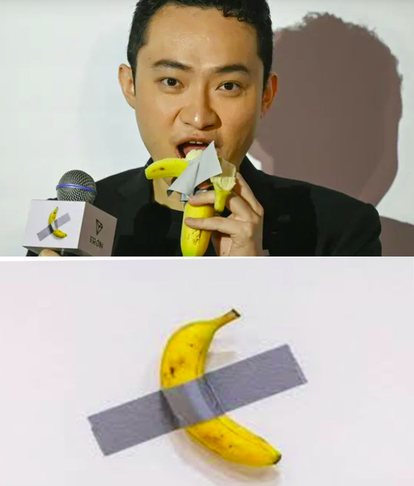 ففي أحد فنادق هونغ كونغ الفاخرة، أكل جاستن صن، وهو رجل أعمال صيني أميركي ومؤسس منصة “ترون” للعملات المشفرة، الموزة التي تمثّل عملاً فنياً.