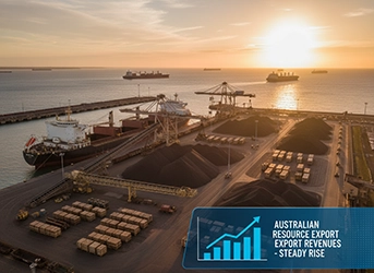 بينما لا يزال إجمالي عائدات صادرات الموارد أقل من ذروته في عام 2022-23 (عندما بلغ نحو 466 مليار دولار أسترالي)،
